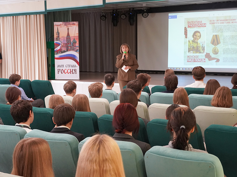 Урок мужества получился массовым – в актовом зале собралась вся параллель 8-х классов. По данным Смоленской областной Думы, говорили и о связи времён, о подвигах женщин в годы войны, в том числе и в наши дни – в период проведения специальной военной операции.