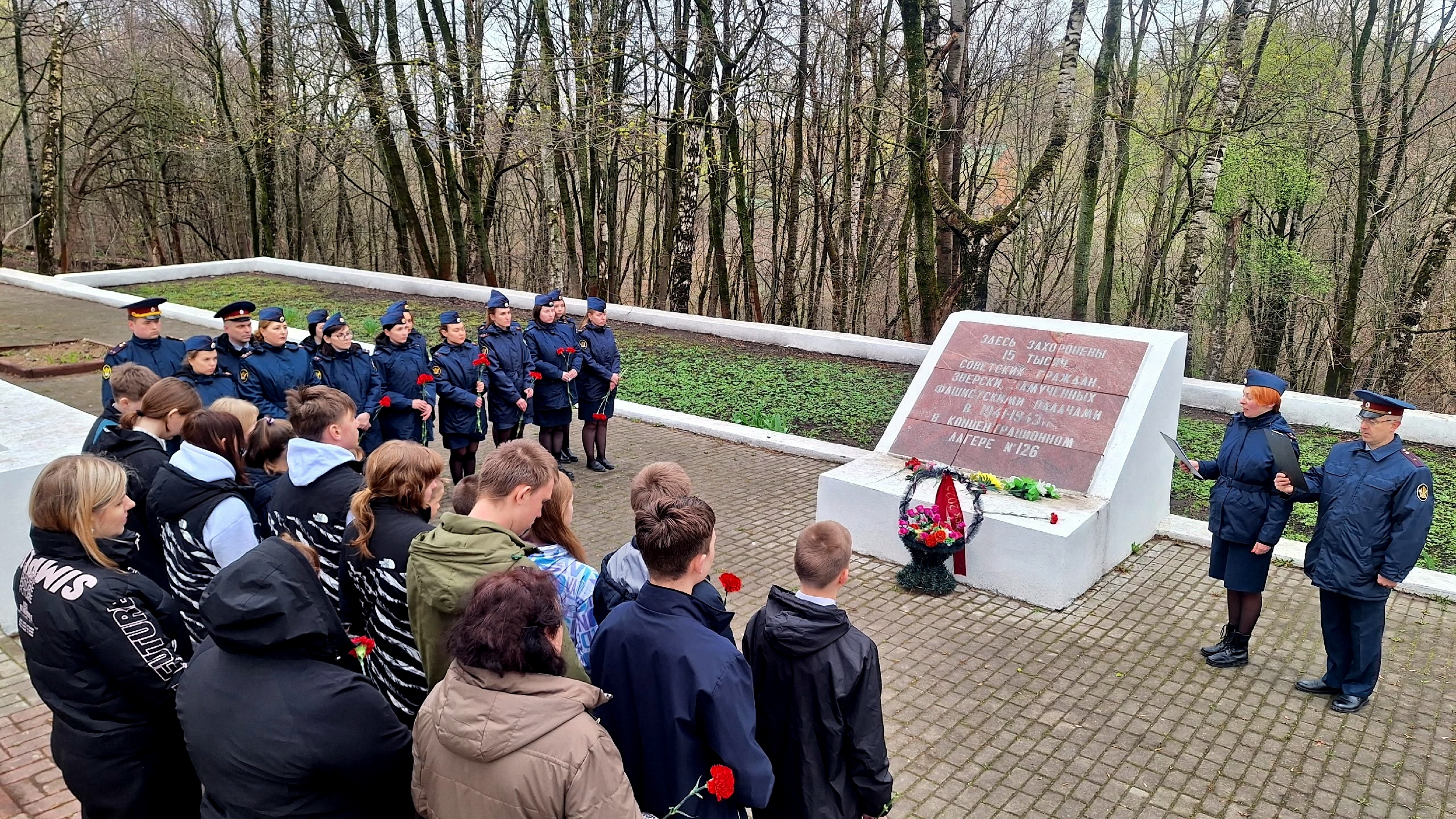 В Смоленске сотрудники УФСИН и воспитанники детского дома семейного типа «Гнёздышко» собрались у мемориала на месте бывшего концентрационного лагеря № 126. Здесь в годы войны погибли около пятнадцати тысяч советских военнопленных. Представители ведомства рассказали детям о героизме и стойкости советских людей, о немыслимых испытаниях, выпавших на долю мирного населения. В знак памяти и уважения к погибшим, участники мероприятия возложили к подножию мемориала красные гвоздики. Минутой молчания почтили память тысяч жертв нацистского террора.