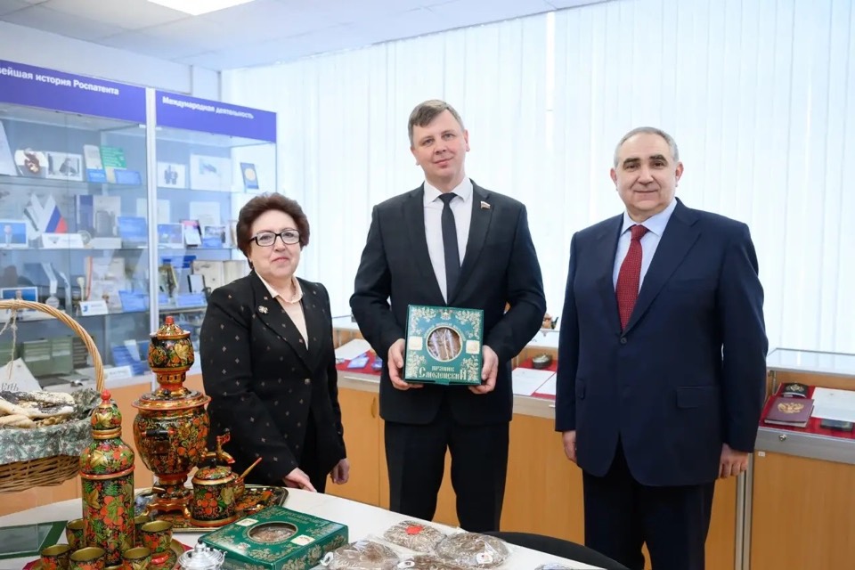 Сенатор передал образцы смоленских брендов в музей Роспатента. «Смоленский пряник» и «Смоленская вышивка» – заняли достойное место наравне с такими известными брендами как Тульский самовар, Златоустовский нож и шампанское Абрау-Дюрсо.