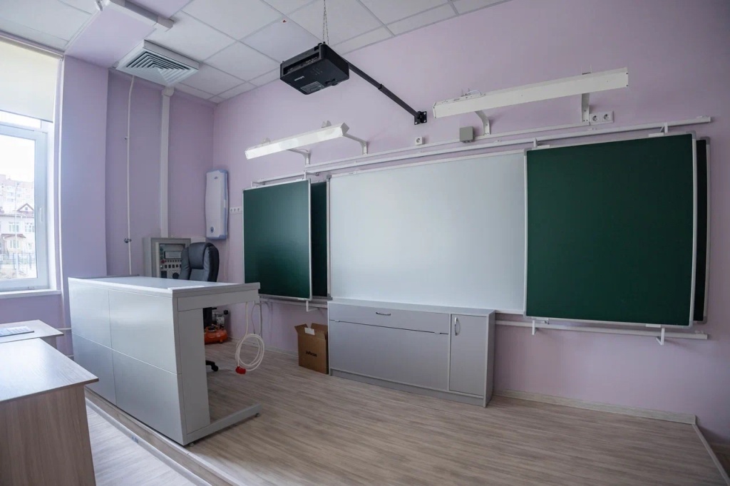 Новое учебное заведение в Королёвке состоит из двух корпусов — учебного и физкультурно-оздоровительного. Внутри просторные классы с новой мебелью, компьютерами и интерактивными панелями, специализированные кабинеты для занятий робототехникой, оборудованные пищеблоки, актовый зал и спортивные помещения.