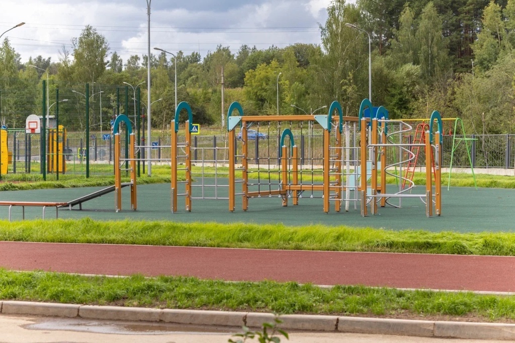На территории школы оборудованы спортивные площадки с безопасным резиновым покрытием.