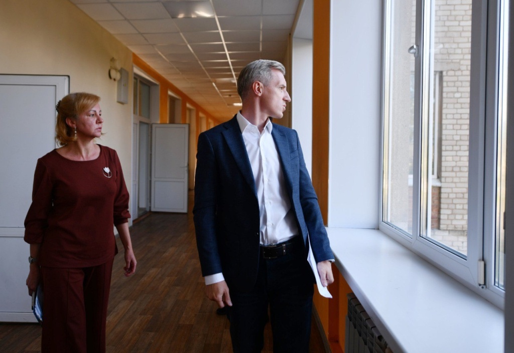 Губернатор пообщался с директором школы, обсудив, что фасад здания и теплосети рядом с ним требуют дополнительного внимания.