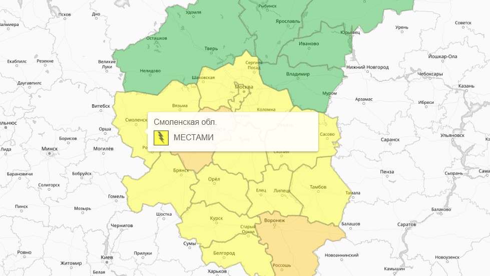 Напомним, «жёлтый» уровень означает потенциально опасную погоду. Такой же уровень погодной опасности действует ещё в девяти регионах на территории Центрального федерального округа.