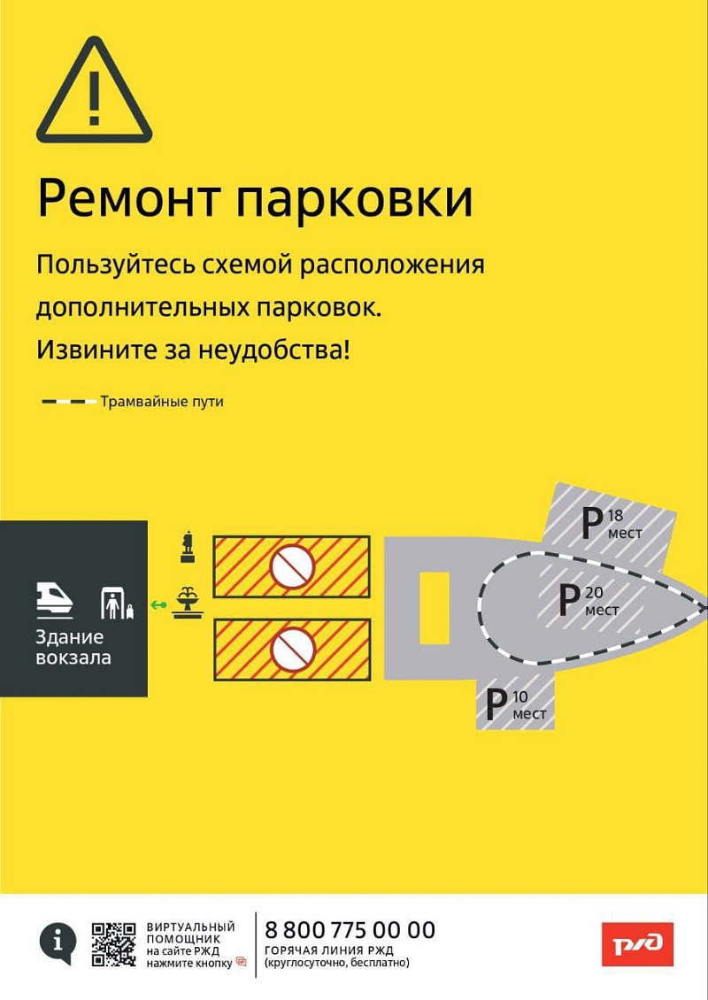 На время проведения работ проезд автомобилей на территорию привокзальной площади будет закрыт.