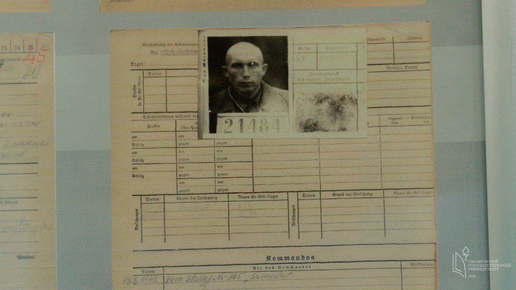 «Также на выставке представлены документы, свидетельствующие о нахождении в концлагерях, трудовых лагерях, рабочих лагерях наших красноармейцев, попавших в плен. 75-летний срок хранения по данным документам прошел. Поэтому мы представили их здесь», – отметила сотрудник архива УФСБ России по Смоленской области Татьяна Караева.