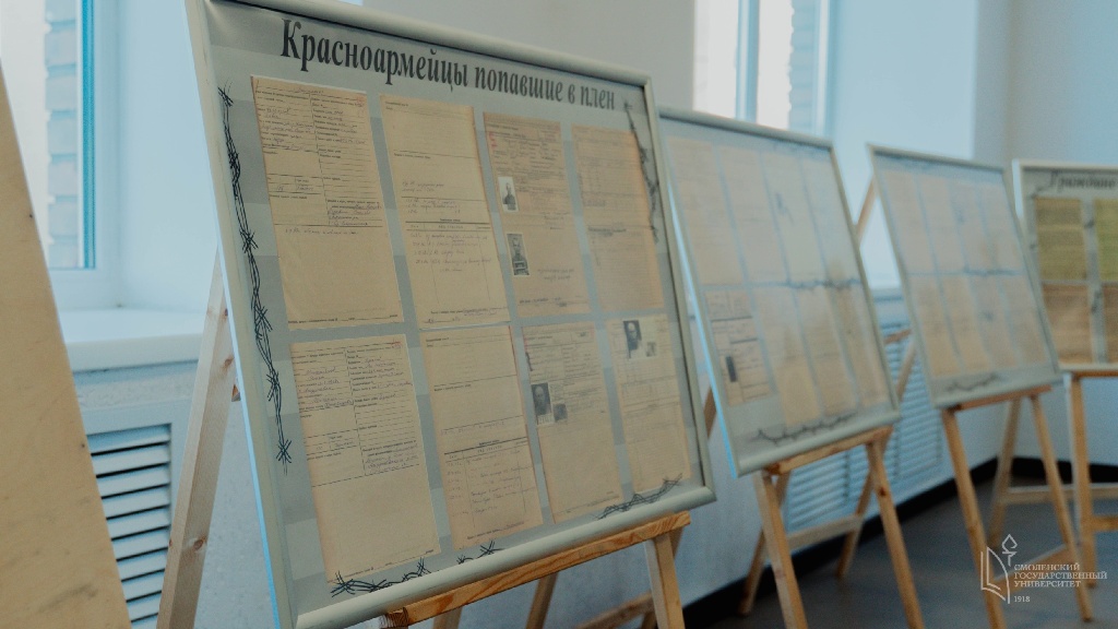 В Смоленском государственном университете открыли выставку, организованную Управлением ФСБ России по Смоленской области. Выставка посвящена 80-летию Великой Победы и проходит в рамках проекта «Без срока давности».
