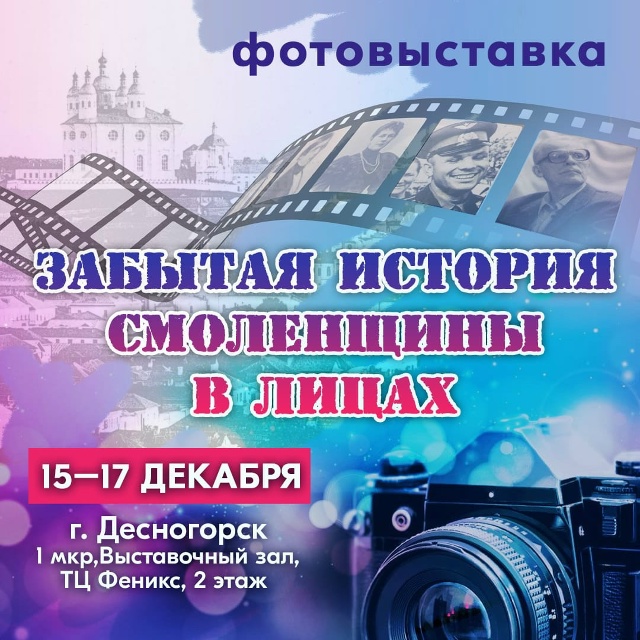 В городе Десногорске с 15 по 17 декабря 2025 года состоится значимое культурное событие – фотовыставка «Забытая история Смоленщины в лицах». Цель выставки – раскрыть новые аспекты богатого исторического наследия Смоленской области через призму человеческих судеб.