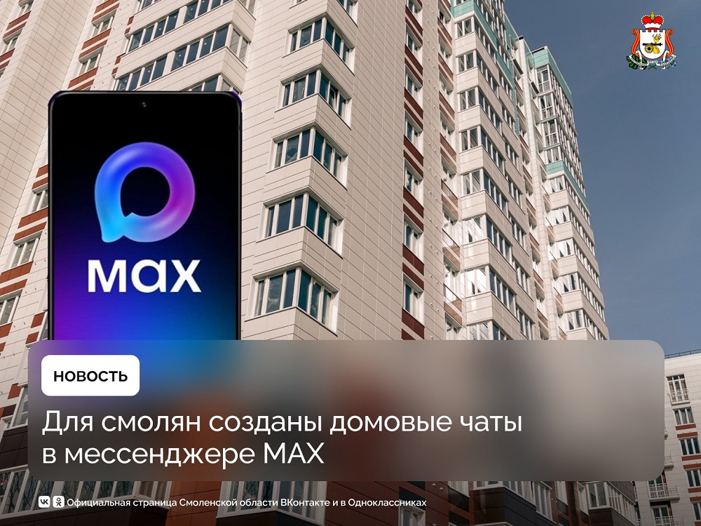 Четыре тыс. домовых чатов зарегистрировано в Смоленской области в мессенджере MAX. Речь идёт о многоквартирных домах, состоящих из 16 и более квартир.