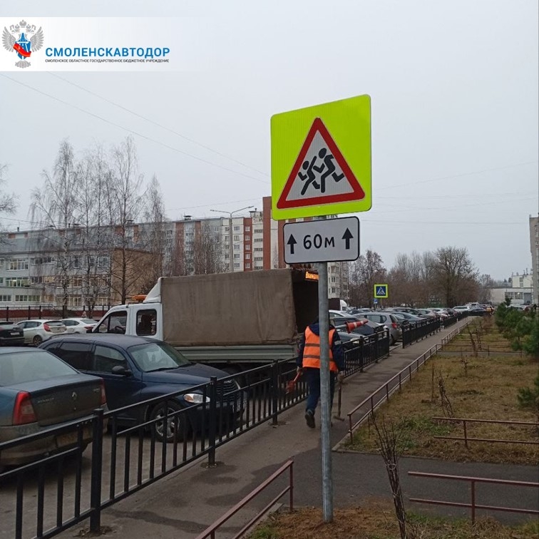 Возле средней школы № 33 в Смоленске установили новые дорожные знаки