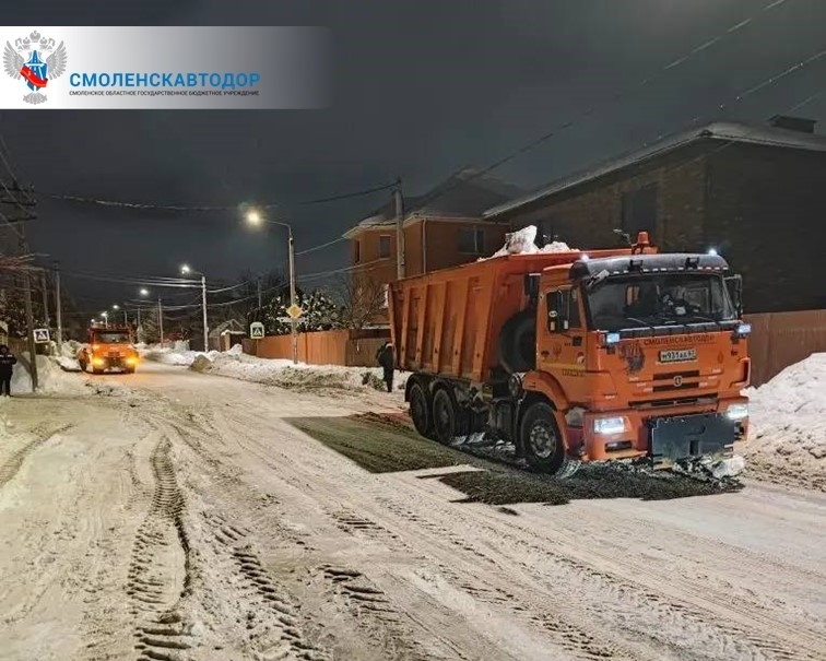 В Смоленске специалисты «Смоленскавтодор» не прекращали работу по уборке и вывозу снега с улиц города все выходные.