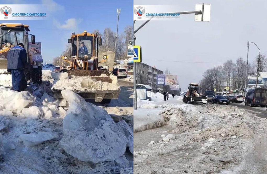 Смоленскавтодор выполняет срезку льда на улице Лавочкина