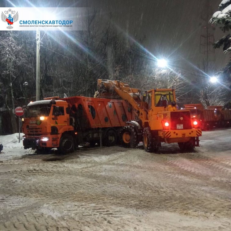 Специалисты «Смоленскавтодора» продолжают обеспечивать порядок городских улиц даже в ночные часы.