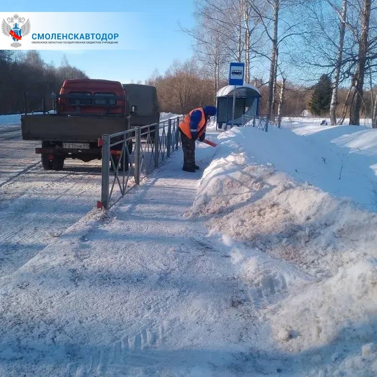 Специалисты «Смоленскавтодора» проводят мероприятия по уборке снега на автодороге Демидов – Рудня