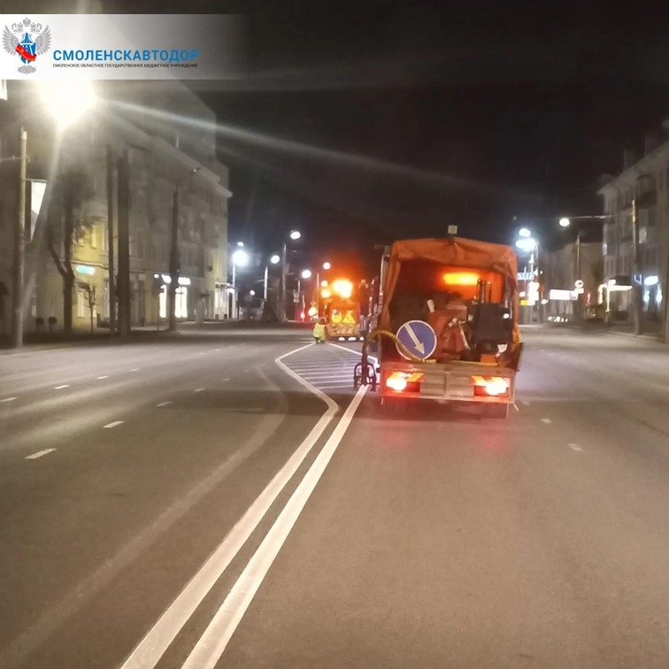 Ночью в Смоленске были проведены работы по обновлению разметки на улично-дорожной сети по проспекту Гагарина.