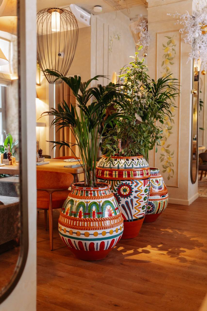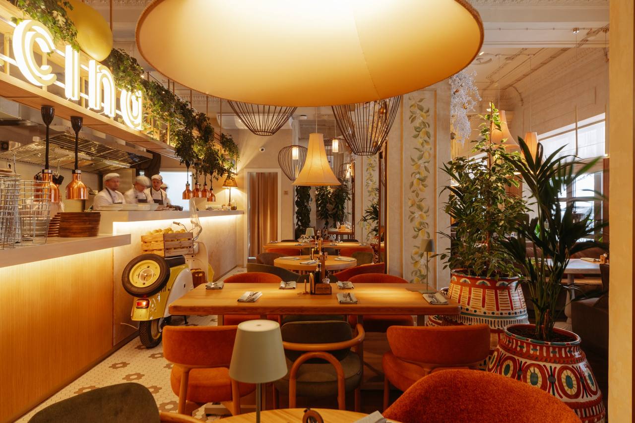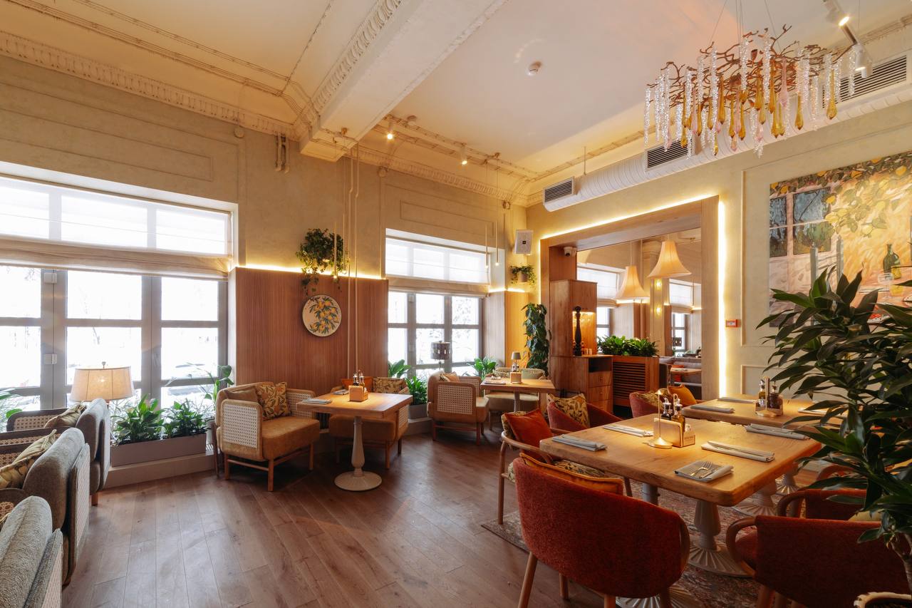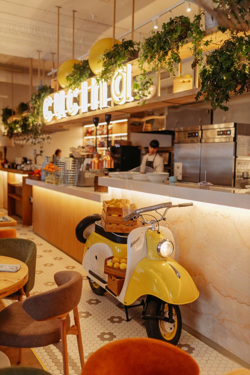 С порога гостей встречает светлый интерьер, живые растения и лимоны, словно привезённые с побережья Амальфи. Здесь звучит приятная музыка, легко дышится и сразу возникает то самое чувство dolce vita — когда никуда не нужно спешить, а жизнь вкусна и проста.