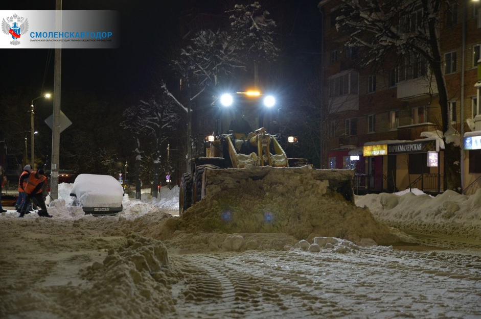 В ночь с 29 на 30 января в Смоленске запланирована масштабная уборка снега, который накопился в результате неблагоприятных метеорологических условий. Для выполнения поставленной задачи задействуют более 70 единиц спецтехники.