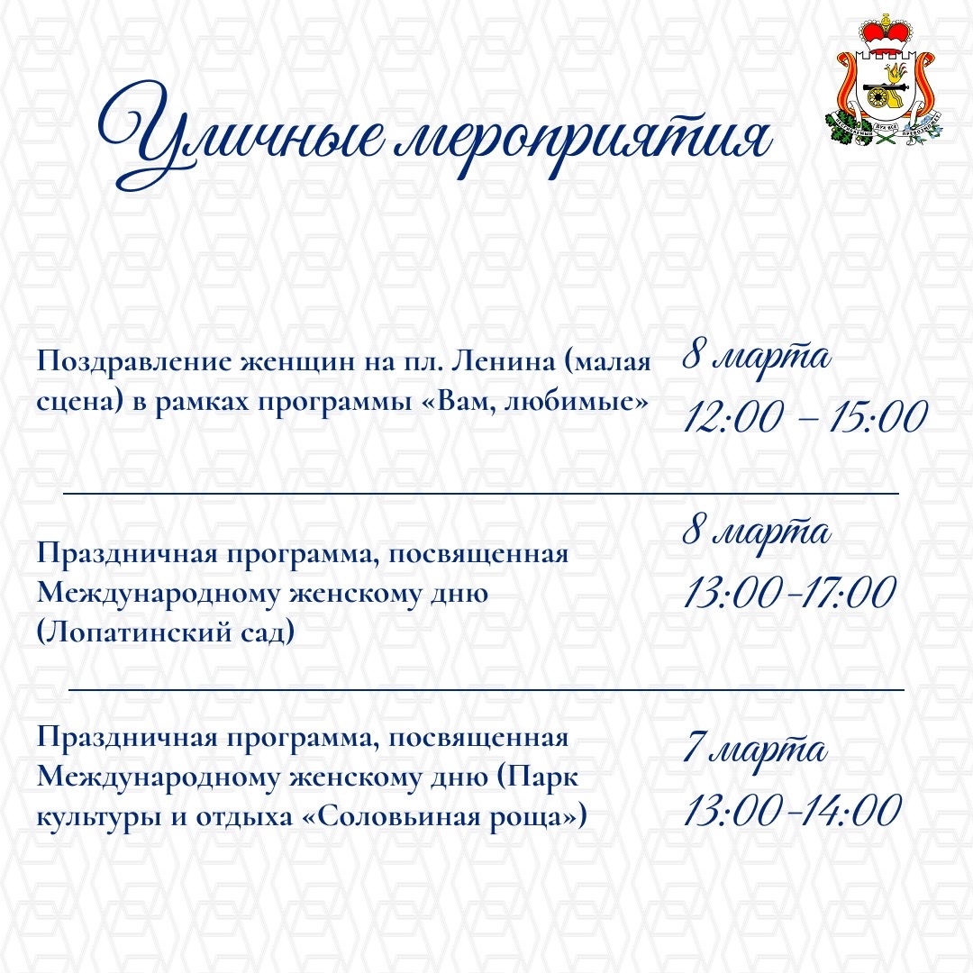 Стала известна полная программа праздничных мероприятий к Международному женскому дню