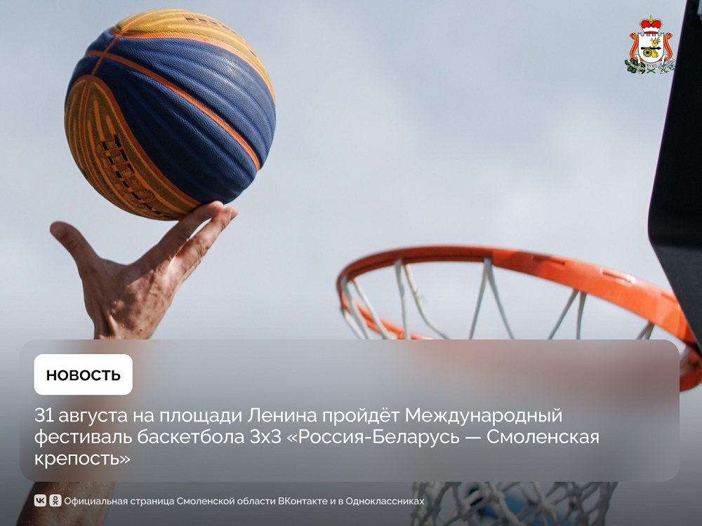 31 августа в Смоленске на площади Ленина пройдёт международный фестиваль баскетбола 3x3 концерна Росэнергоатом «Россия-Беларусь — Смоленская крепость». Соревнования, как отмечают организаторы, призвано укрепить спортивные связи между Россией и Республикой Беларусь, а также популяризировать активный образ жизни.