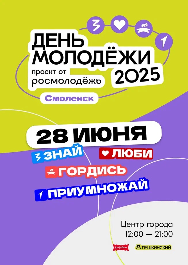 В этом году День молодёжи состоится 28 июня. Праздник пройдёт под лозунгом «Знай. Люби. Гордись. Приумножай» и впервые охватит все регионы России, включая Смоленскую область.