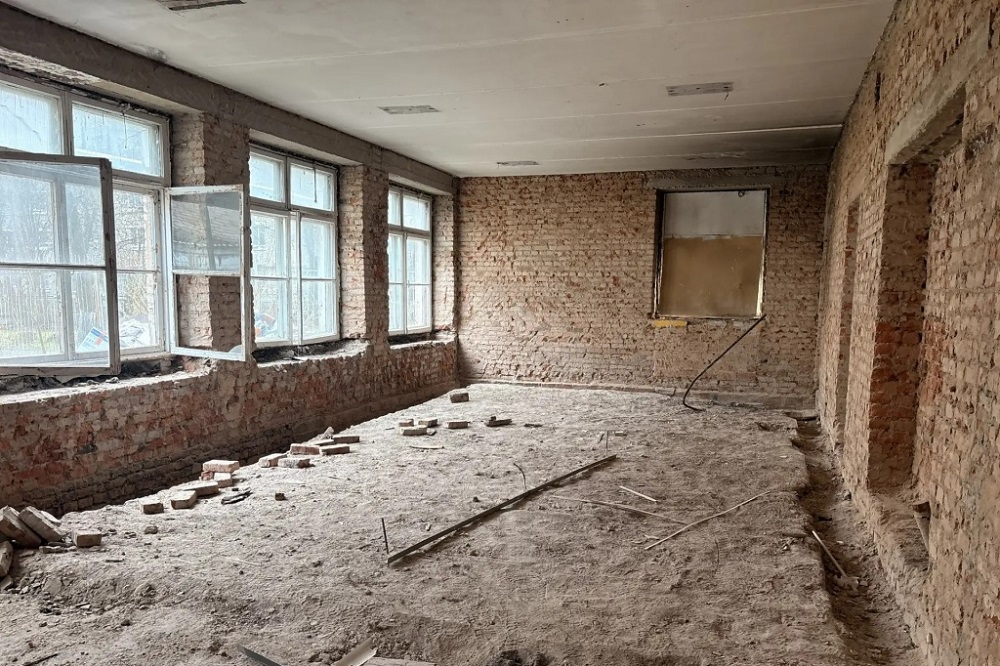 Общая готовность объекта — 12%. Работы идут в соответствии с графиком. Подрядчик уже демонтировал старые перегородки и инженерные коммуникации. Сейчас помещения готовятся для дальнейших работ.