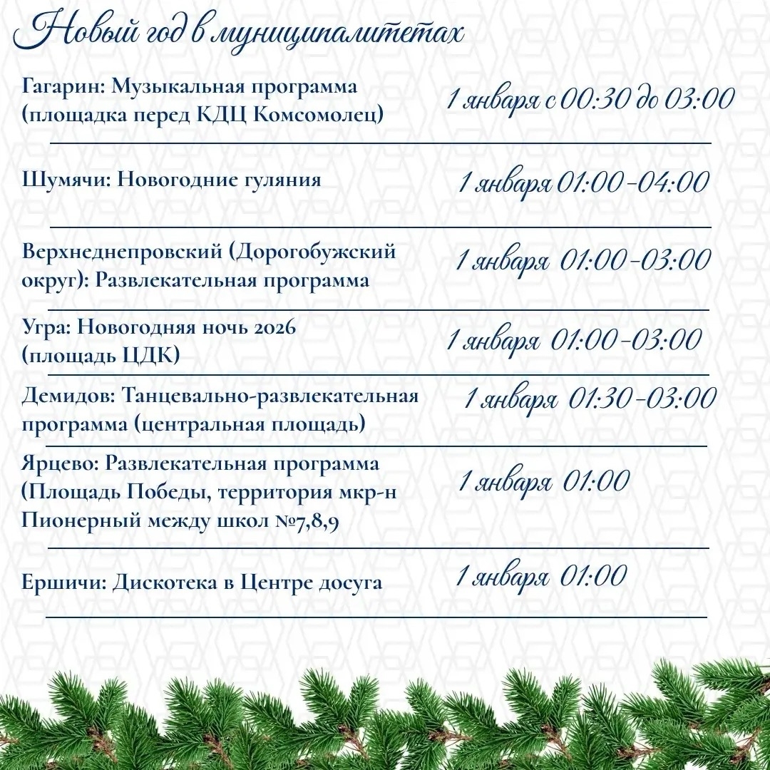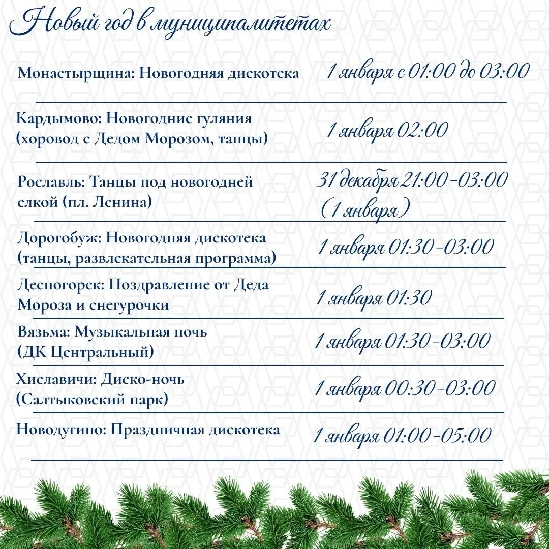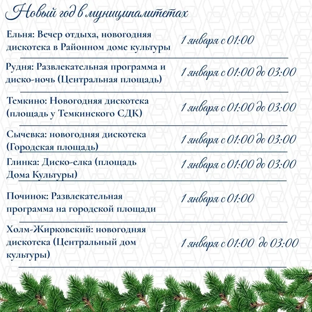 Новогодние и рождественские гуляния пройдут и в муниципальных образованиях Смоленской области.