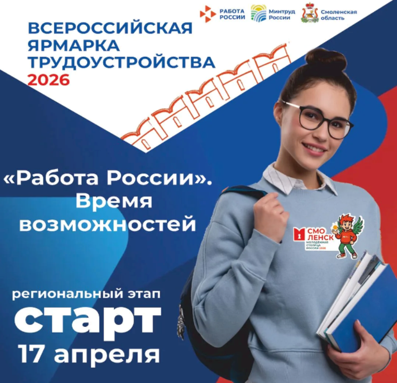 17 апреля в Смоленской области пройдёт региональный этап ежегодной Всероссийской ярмарки трудоустройства «Работа России. Время возможностей».